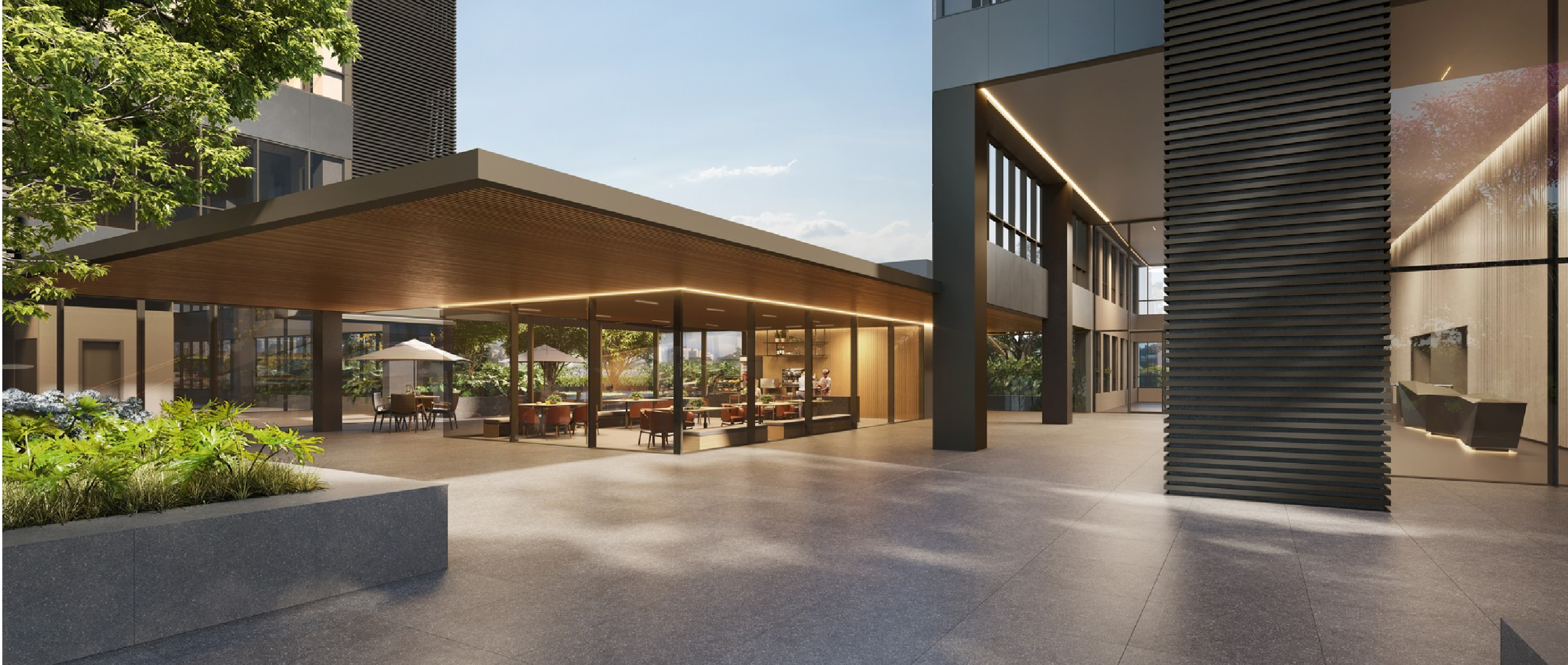 Além disso, o complexo conta com lobbies sofisticados, lojas, cafés e praças com áreas verdes, criando um ambiente que estimula networking, bem-estar e produtividade.