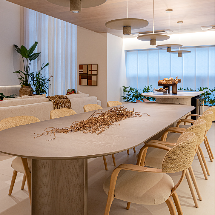 Com 225 m² de área privativa, os apartamentos do TorreBlanca estão sendo concebidos para oferecer privacidade e exclusividade. São apenas dois apartamentos por andar, com hall social privativo e três suítes. No decorado, essa distribuição se traduz em uma circulação fluida, onde cada ambiente se conecta de maneira natural.