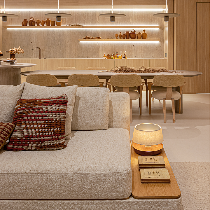 Ao percorrer o decorado, os detalhes do design revelam o cuidado da Galmo com a experiência do morador. Os acabamentos sofisticados, o tratamento acústico, as soluções de iluminação e a atenção aos materiais criam uma atmosfera silenciosa, confortável e atemporal. O banheiro máster, com duas cubas, duchas de teto e banheira freestanding, traduz esse conceito de bem-estar aplicado à escala do dia a dia.